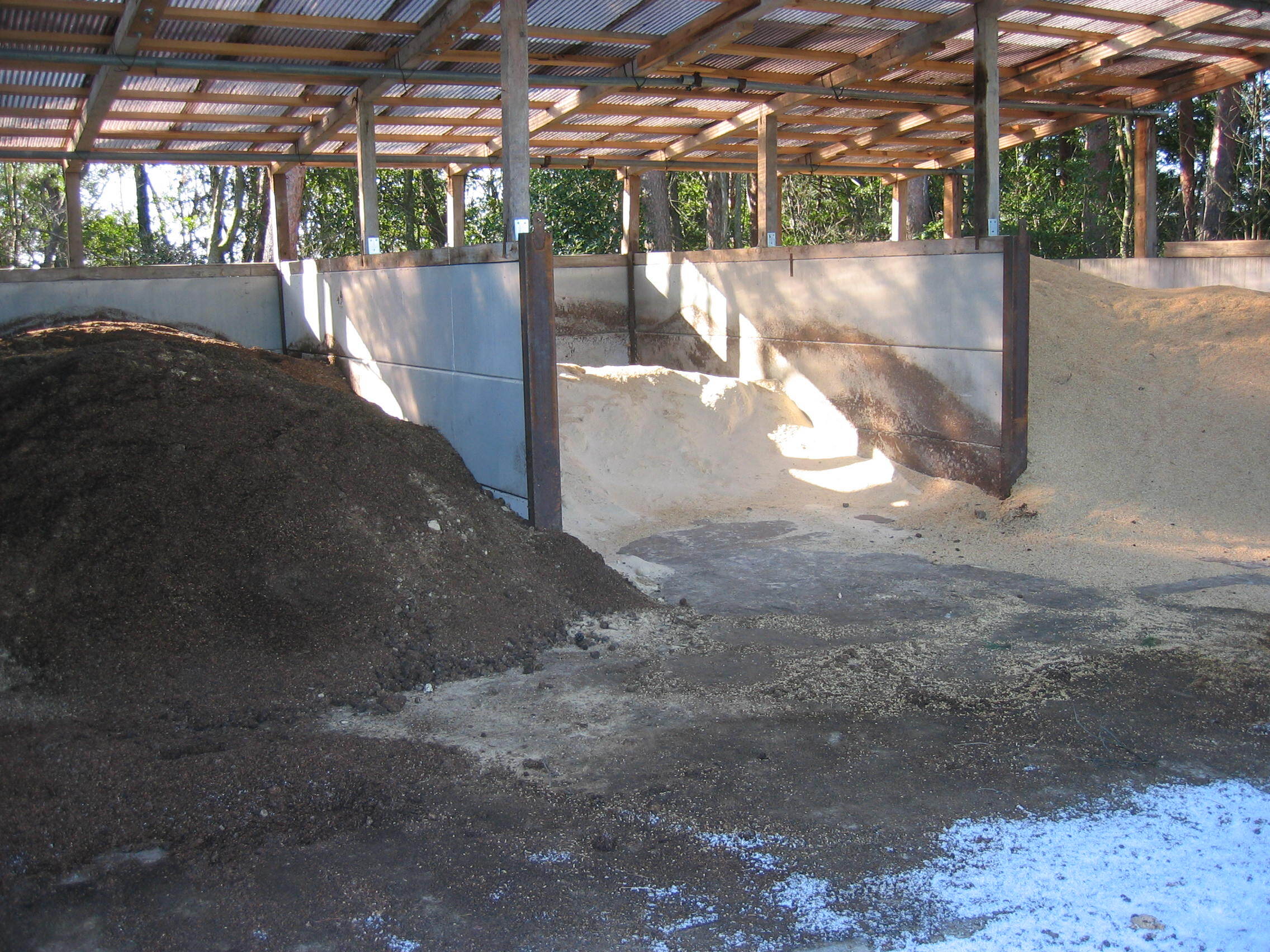 地元の企業から出ます、オカラ、もみ殻、米ぬか、栗の皮などの副産物を利用し、自家製堆肥を作り、お茶畑に施しております。